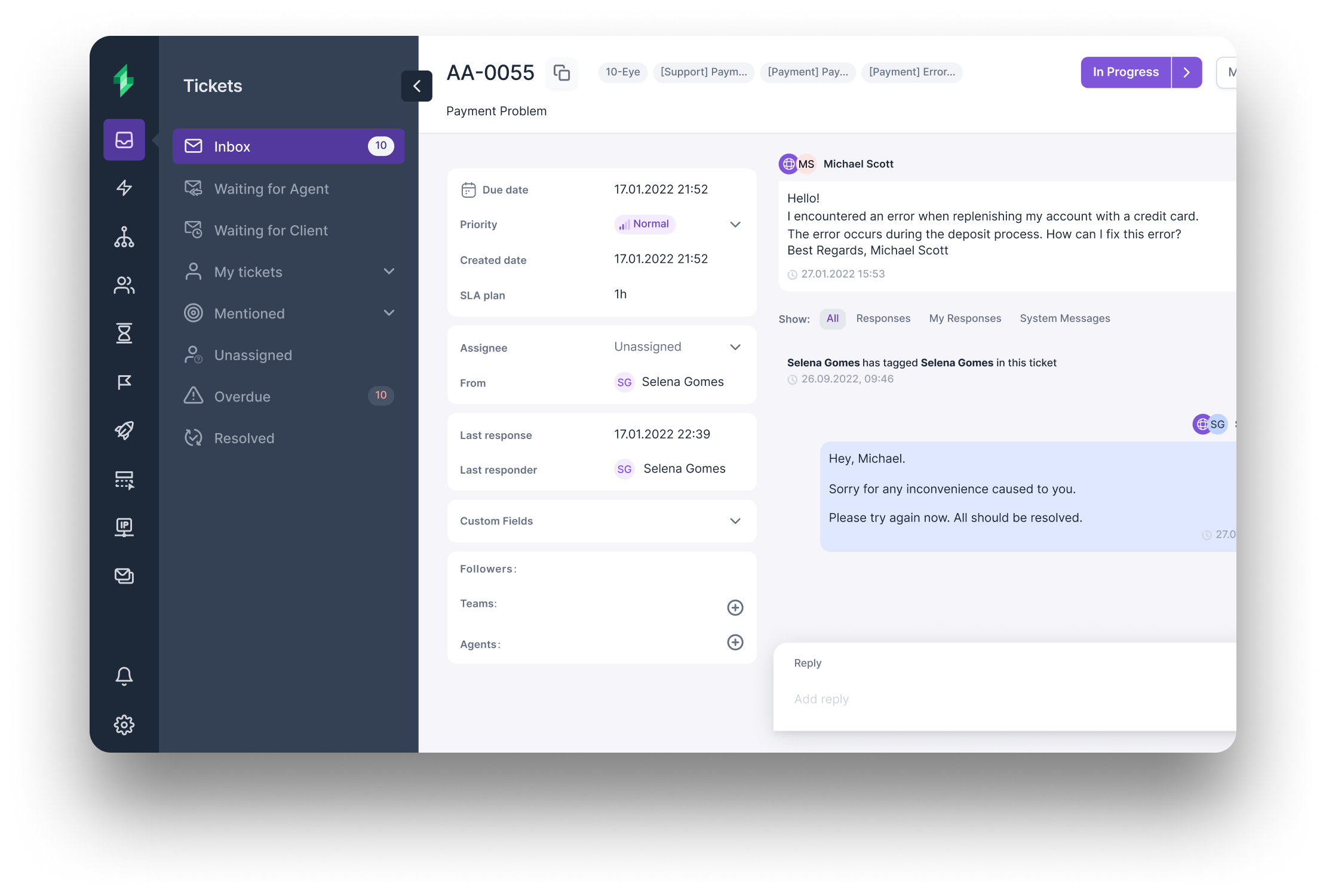 Receive notifications from various social channels to be able to proceed with ticket shortly.